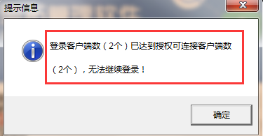 登錄時(shí)如果出現(xiàn)如下提示,說明連接用戶數(shù)已經(jīng)超過所購買的云應(yīng)用用戶數(shù)。如果需要升級(jí)增加云應(yīng)用用戶數(shù),可聯(lián)系我們客服。