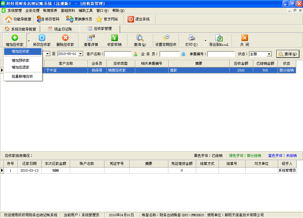 2、獨有應收應付款雙向核銷機制,通過建立定期應收應付,讓你未雨綢繆,及早掌控財務方向