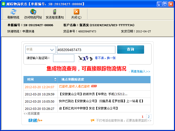 4、送貨單中增加聯系人、聯系電話等信息,可與客戶信息中的地址、電話不一樣,支持客戶有多個送貨地址的情況。