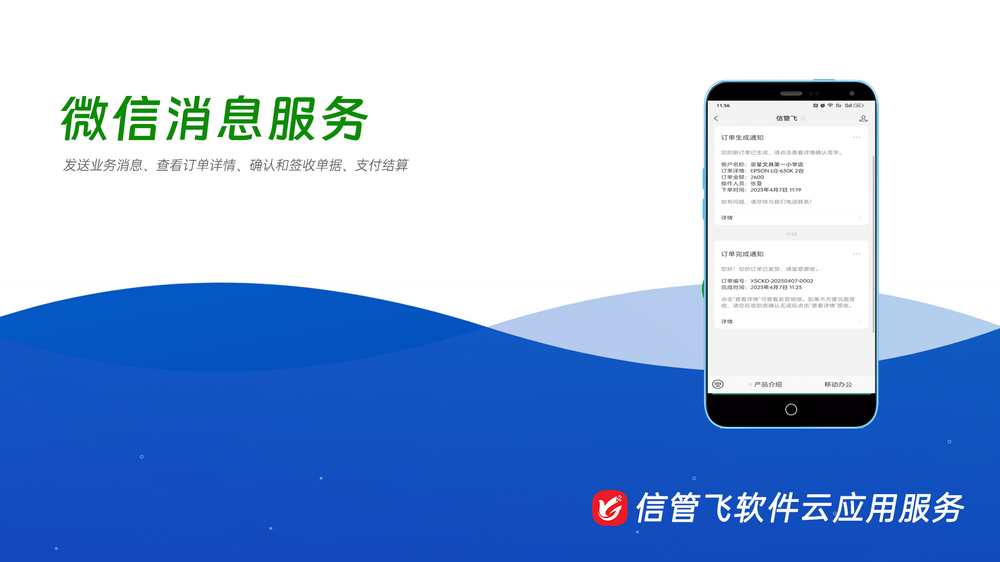 微信消息服務(wù)是信管飛軟件基于微信開放平臺(tái)研發(fā)的業(yè)務(wù)消息發(fā)送服務(wù),支持即時(shí)推送業(yè)務(wù)單據(jù)消息(如訂單通知、發(fā)貨信息、催款通知等),支持客戶查看消息詳情(可配置外部查看數(shù)據(jù)項(xiàng))、單據(jù)簽收確認(rèn)、分享轉(zhuǎn)發(fā)等功能。