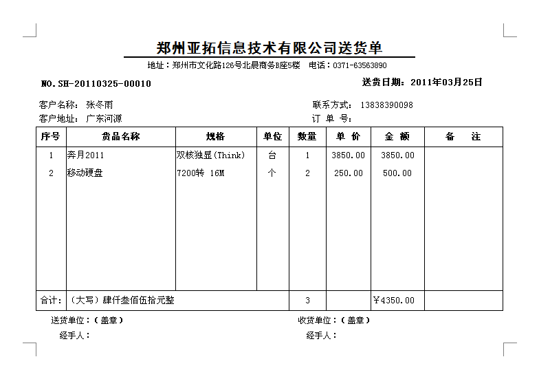2011年12月31日前購(gòu)買正版送貨單軟件,我們可免費(fèi)定制送貨單樣式一套,以后如果新設(shè)計(jì)打印格式模板每個(gè)50元。系統(tǒng)內(nèi)置了一些送貨單打印格式供參考,可在現(xiàn)有模版的基礎(chǔ)上進(jìn)行定制,也可以將送貨單格式進(jìn)行掃描發(fā)送給我們,由我們進(jìn)行定制。