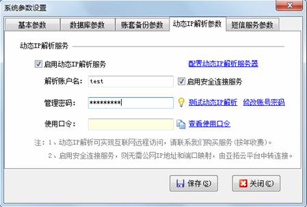 ②解析帳號的密碼分為管理密碼和使用口令。客戶端程序登錄的時候只需要知道使用口令即可。管理密碼在系統(tǒng)參數(shù)配置中使用,由系統(tǒng)管理員掌握即可。