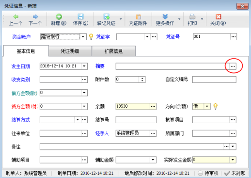 紅管家出納記賬軟件內(nèi)可以維護日記賬憑證的摘要信息,憑證的摘要是必填項,可從選擇按鈕中選擇或者手工錄入。摘要能夠概要的說明憑單內(nèi)容,方便以后查找。本篇文章以紅管家出納記賬軟件專業(yè)版為例詳細(xì)介紹一下如何維護憑證摘要?