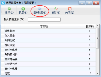 在新增憑證窗口,如圖2所示,點擊摘要后面的“...”選擇按鈕,系統(tǒng)彈出“選擇數(shù)據(jù)字典(常用摘要)”窗口,如圖3所示,然后點擊“維護數(shù)據(jù)”按鈕,系統(tǒng)彈出“常用摘要維護”窗口,如圖4所示,可以進(jìn)行新增、刪除、導(dǎo)入、導(dǎo)出摘要信息等操作,最后點擊“保存”按鈕進(jìn)行保存即可。