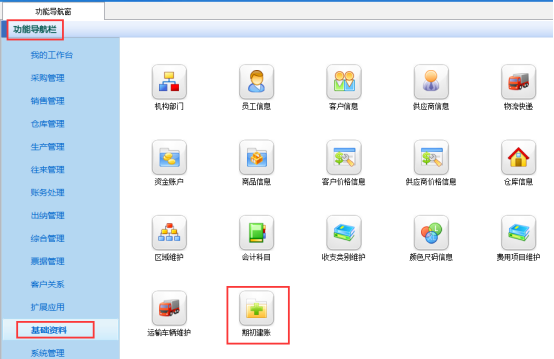 以亞拓管理軟件專業(yè)版本為例,示范如何修改賬套啟用后的客戶期初應(yīng)收應(yīng)付款,選擇“功能導(dǎo)航窗”的“基礎(chǔ)資料”選項(xiàng),進(jìn)入基礎(chǔ)資料窗口,選擇“期初建賬”,進(jìn)入“期初應(yīng)收應(yīng)付”界面,流程如下圖所示: