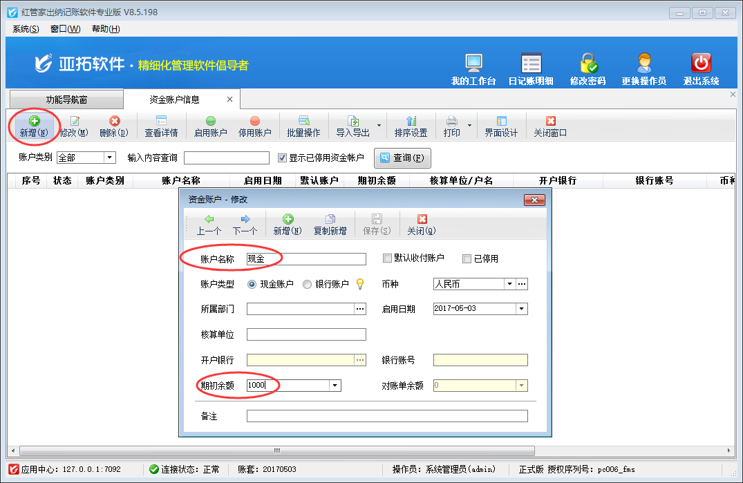 許多用戶在使用軟件正式記賬之前都需要維護資金賬戶并錄入期初余額,此時都會問到一個問題:如何新增資金賬戶并錄入資金賬戶的期初余額?本節(jié)我們以紅管家出納記賬軟件專業(yè)版來介紹一下出納記賬軟件內(nèi)如何新增資金賬戶并錄入資金賬戶期初余額?