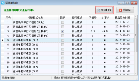 在送貨單打印窗口,選擇需要打印的格式后點(diǎn)擊“預(yù)覽打印”按鈕可以查看打印預(yù)覽效果,如圖3所示,預(yù)覽后進(jìn)行正常打印即可。