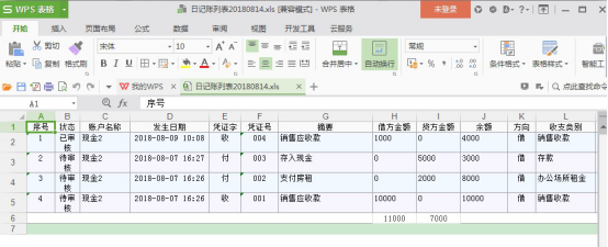 1、導出日記賬表格