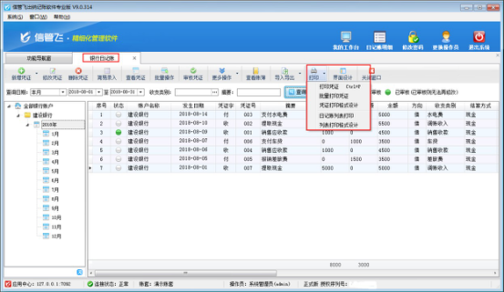 3、打印銀行日記賬憑證和日記賬列表