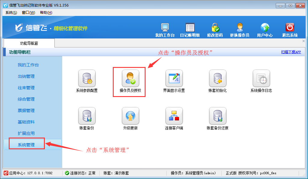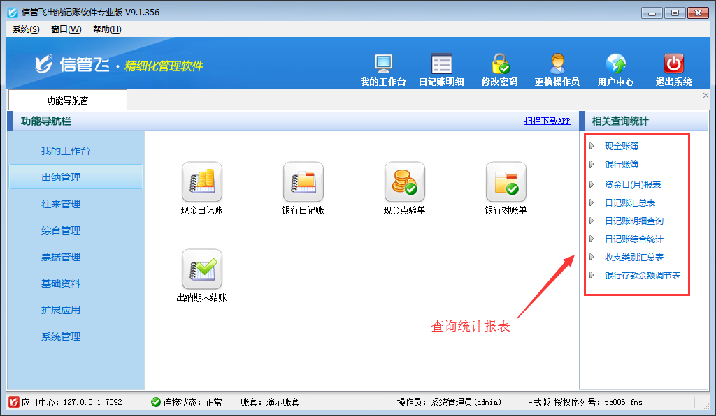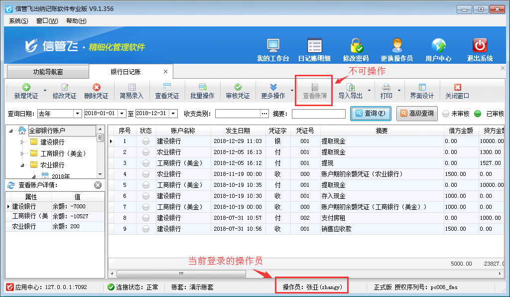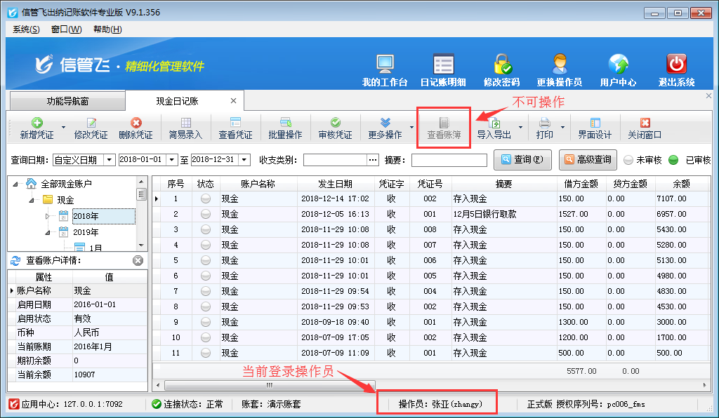歡迎免費下載試用這款可設置操作員不可查看現金及銀行賬簿出納記賬軟件信管飛出納記賬軟件