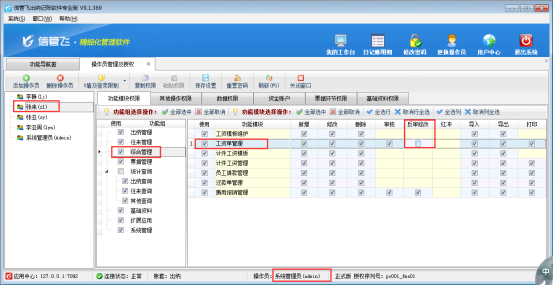 信管飛出納記賬軟件專業版,支持設置工資模板來管理員工工資單,為了避免操作員修改工資單,軟件中可以設置操作員的工資單不可反審修改權限。下邊我們在軟件中示范下如何設置操作員的此權限。