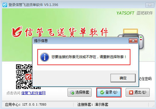 部分客戶有時存在不正常退出情況,重新登錄軟件時提示“您要選擇的賬套無效或不存在”,如下圖所示:
