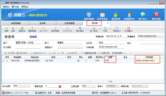 信管飛送貨單軟件是集送貨單、退貨單、應收款管理、對賬單一體的送貨軟件,軟件針對客戶送貨后出現退貨情況,軟件中對此客戶的實際收款該如何處理?本文以“信管飛送貨單軟件”為例,示范下送貨單軟件中如何管理退貨以及沖抵應收款操作。