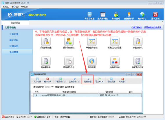 本文以信管飛送貨單軟件為例,介紹一下云賬套模式如何上傳本地試用數(shù)據(jù)備份文件,并還原本地備份數(shù)據(jù)?