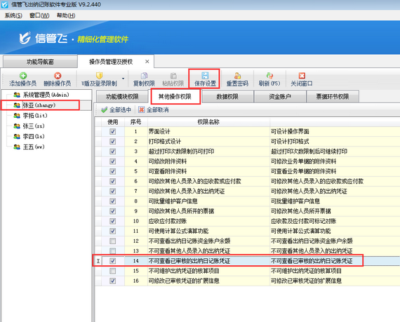歡迎免費下載試用這款支持操作員權限設置出納記賬軟件信管飛出納記賬軟件