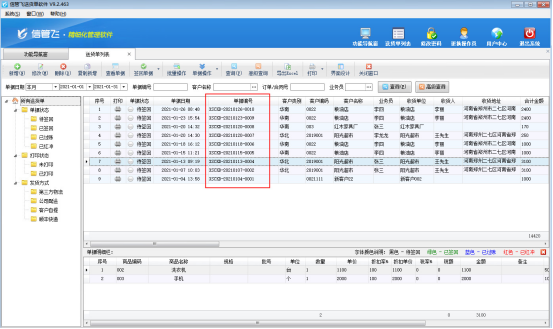信管飛RMS信管飛送貨單軟件信管飛倉庫管理軟件開單保存后都會自動生成單據編號,單據編號流水號依次遞增,單據保存后可以在單據匯總表中查看,方便用戶按單據編號快速查詢單據。