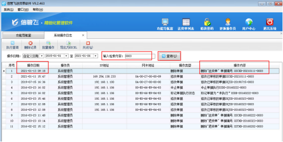 歡迎免費下載試用這款可以查看系統操作日志的送貨單打印軟件信管飛送貨單軟件