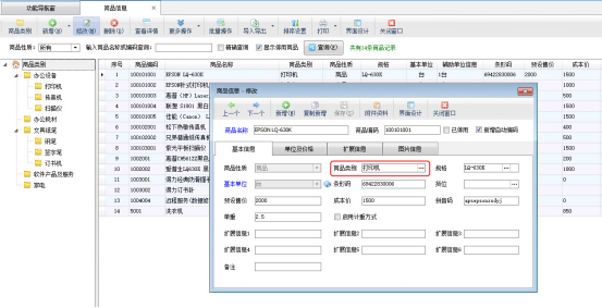 首先需要對(duì)商品進(jìn)行分類(lèi),在功能導(dǎo)航窗點(diǎn)擊“基礎(chǔ)資料”—》“商品信息”打開(kāi)商品信息主界面,新增或修改商品窗口可以選擇商品類(lèi)別,如下圖1所示。
