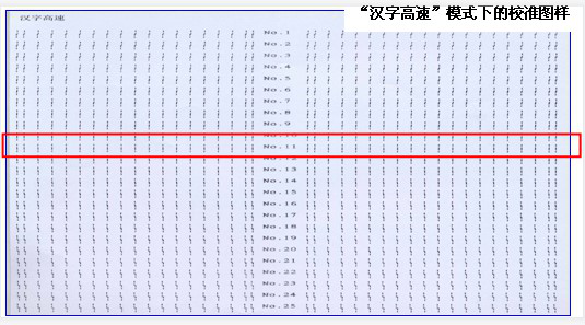 按打印機【設定】鍵,打印機會打印出“漢字高速模式下的校準圖樣”,表示已進入“漢字高速”校準模式;