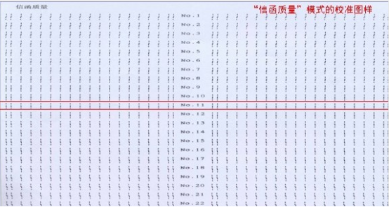 按打印機【設定】鍵,打印機會打印出“信函模式下的校準圖樣”,表示已進入“信函質量”校準模式,如下圖所示: