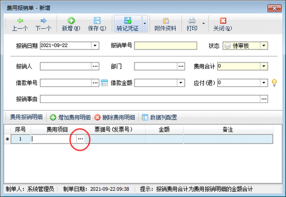 2、可以在新增費用報銷單界面維護常用費用項目