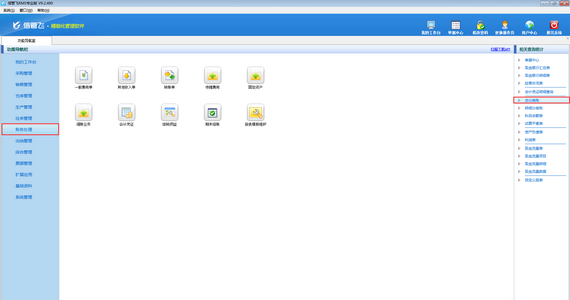 在功能導(dǎo)航窗點(diǎn)擊財(cái)務(wù)管理界面,右側(cè)相關(guān)查詢統(tǒng)計(jì)中點(diǎn)擊“總分類賬”,打開總分類賬界面。如下圖所示: