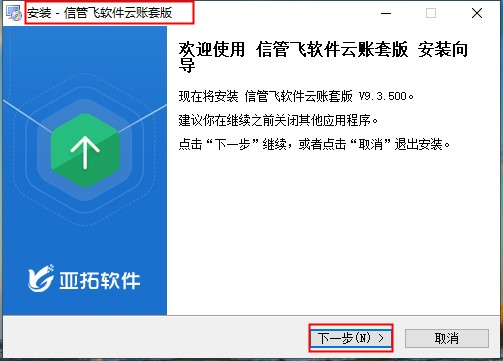 軟件升級更新設(shè)置了更新程序,登錄時會提示版本不一致,需要升級更新,直接點擊“確定”按鈕,彈出提示信息是否下載更新,點擊“是”下載版本,下載完成后點擊“立即安裝”,會彈出安裝界面。下一步默認安裝路徑在“D盤信管飛軟件云賬套文件”,點擊下一步繼續(xù)安裝,如下圖所示: