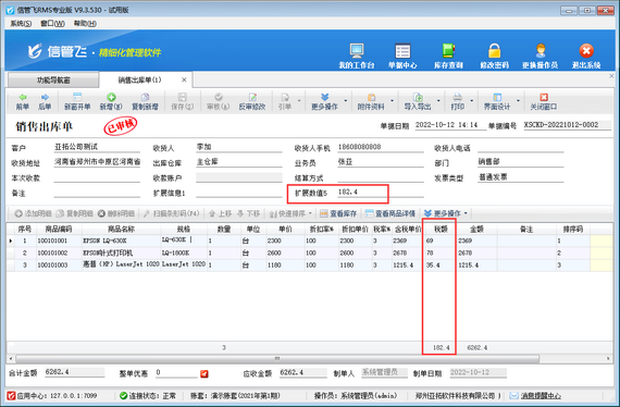 信管飛RMS在新增銷售單時支持商品以含稅價格進行銷售,為了方便更直觀的查看每張銷售單合計稅額,軟件支持將銷售單稅額合計保存到“單據主體.擴展數值”數據項內。本文介紹一下如何設置銷售單保存稅額合計到單據擴展數值數據項。