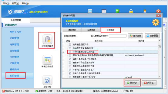 模板保存后,需要在系統(tǒng)管理—》“系統(tǒng)參數(shù)配置”業(yè)務(wù)參數(shù)中啟用下參數(shù)“打印重新獲取往來(lái)欠款”,然后預(yù)覽打印模板可看到欠款中計(jì)算累計(jì)金額為本單前應(yīng)收款+本單應(yīng)收的合計(jì)金額-本單收款金額,如下圖所示: