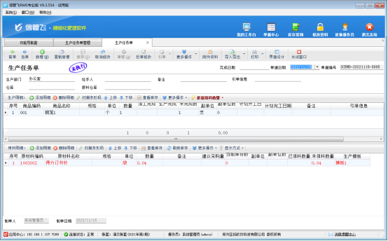 生產(chǎn)管理模塊是信管飛RMS軟件的擴(kuò)展模塊,如需使用,是需要另外購買的,可聯(lián)系在線客服進(jìn)行咨詢試用。