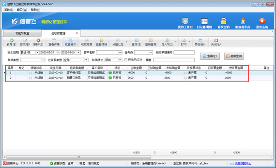 客戶預(yù)付款是客戶提前預(yù)付給我們的金額,可以用來沖銷銷售產(chǎn)生的應(yīng)收款,本文以信管飛出納記賬軟件為例演示一下客戶預(yù)付款部分沖銷銷售應(yīng)收款,如何開收款結(jié)算單?