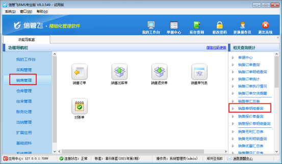 信管飛RMS軟件、信管飛倉庫管理軟件、信管飛送貨單軟件等都支持開銷售單,已開單據(jù)支持匯總統(tǒng)計(jì)。軟件根據(jù)錄入的單據(jù),可以自動(dòng)生成統(tǒng)計(jì)報(bào)表,后期查詢對(duì)賬可做到一目了然。針對(duì)客戶咨詢?nèi)绾螌?dǎo)出某客戶一段時(shí)間的所有銷售商品明細(xì),本文示范下不同軟件在哪進(jìn)行查詢匯總?