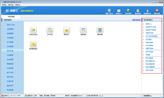 財(cái)務(wù)報(bào)表是財(cái)務(wù)報(bào)告的主要部分,是反映企業(yè)或預(yù)算單位一定時期資金、利潤狀況的會計(jì)報(bào)表。信管飛RMS專業(yè)版支持財(cái)務(wù)處理功能,可登記會計(jì)憑證,并支持生成財(cái)務(wù)報(bào)表,如資產(chǎn)負(fù)債表、利潤表、現(xiàn)金流量表等,如下圖所示。如果不希望員工賬號登錄后查看到這些報(bào)表,如何設(shè)置呢?本篇文章演示一下如何設(shè)置操作員不可查看資金負(fù)債表?