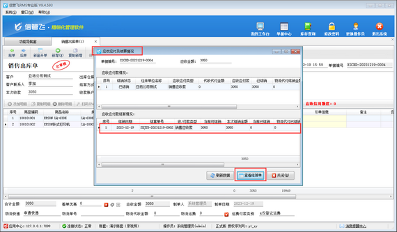 銷售出庫單保存審核完成后,在銷售出庫單界面工具欄點擊“更多操作”—》“查看應(yīng)收款結(jié)銷情況”打開“應(yīng)收應(yīng)付及結(jié)算情況”窗口,如下圖所示。