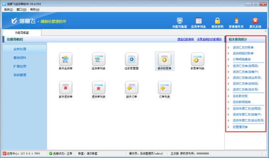 信管飛送貨單軟件是集訂單管理、送貨管理、收款結算等功能并支持送貨明細對賬及業務綜合對賬的送貨單打印軟件,業務開單后會自動生成相應的查詢報表,如下圖所示: