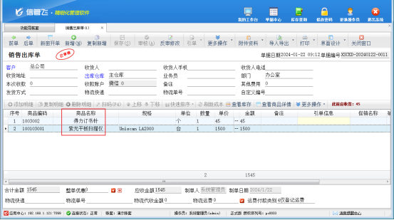 在功能導(dǎo)航窗點“銷售管理”—》“銷售出庫單”即可進入“銷售出庫單”界面,系統(tǒng)默認(rèn)的單據(jù)內(nèi)容是居左顯示的。