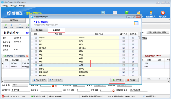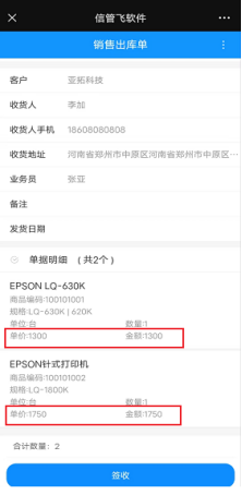 在外部客戶界面設(shè)計,單據(jù)明細項取消勾選單價和金額,然后點擊保存按鈕,接收訂單消息詳情不能查看單價和金額,如圖所示: