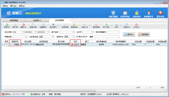 信管飛軟件開發(fā)的新架構(gòu)管理軟件具有紅沖單據(jù)的功能,那么紅沖單據(jù)是什么意思呢?又該如何紅沖單據(jù)呢?紅沖單據(jù):紅沖相當于作廢,有時單據(jù)已審核后又發(fā)現(xiàn)有錯誤或者不需要此單據(jù)了,想刪除此單據(jù)時,此時可以點擊工具欄中的“更多操作”—》“紅沖單據(jù)”來將“已審核”的單據(jù)進行紅沖,紅沖后的單據(jù)會變?yōu)闊o效,相應(yīng)的應(yīng)付款、應(yīng)收款會刪除,之前對庫存的影響也會解除。有客戶反饋銷售單據(jù)已紅沖,應(yīng)收款管理界面仍然顯示未結(jié)銷的應(yīng)收款,如圖所示: