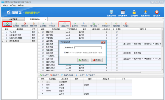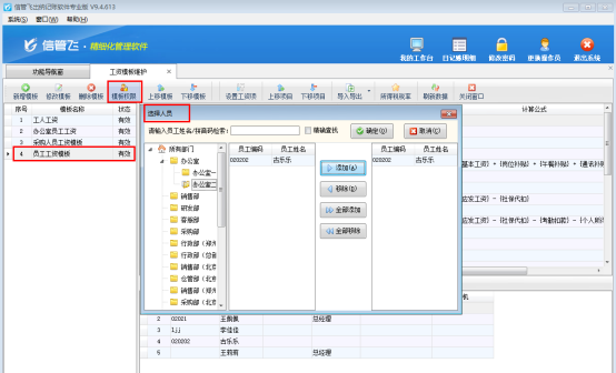 支持軟件啟用工資模板權(quán)限,在工資模板維護界面支持設置每個模板的可查看人員,選擇后使用操作員登錄在工資模板維護界面僅顯示允許自己查看的工資模板。