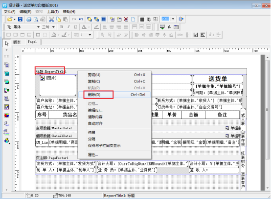 2、關鍵操作替換頁標頭:在模板設計器中選擇原“標題表頭”區域,右鍵刪除后替換為“頁標頭”欄目。通過shift+方向鍵或者拖動的方式精準調整頁標頭高度,確保標題內容完整嵌入。此操作可確保每頁頂部自動生成統一標題,徹底告別后續頁面標題缺失問題。