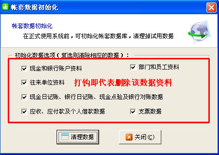 一般在試用好的好好用財務出納記賬系統期間會輸入一些試用的數據,比如客戶/員工資料或一些憑證記錄、報表類,當您試用結束后想刪除這些無用的數據錄入新數據時,可以通過本系統的“帳套數據初始化”功能來一次性清除,方便快捷。 下面是帳套數據初始化功能的操作步驟: 點擊系統管理—》帳套數據