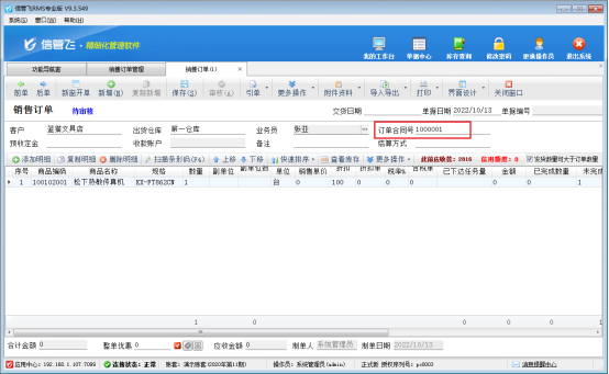 信管飛RMS軟件支持開銷售訂單保存自動生成對應的單據編號,同時軟件支持開單錄入自定義編號(訂單合同號),部分用戶在開銷售訂單錄入自定義編號時會出現編號無法直接錄入的情況,本篇文章以信管飛RMS軟件為例介紹下如何解決開銷售訂單時自定義編號無法錄入的問題? 在功能導航窗點擊“銷售管理”—》“銷售訂單”,進