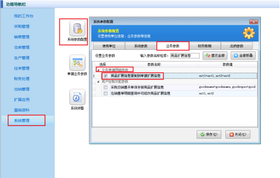 演示視頻觀看鏈接:如何設(shè)置商品擴(kuò)展信息復(fù)制到單據(jù)擴(kuò)展信息演示視頻 信管飛RMS軟件、信管飛倉(cāng)庫(kù)管理軟件、信管飛送貨單軟件都支持設(shè)置商品的擴(kuò)展信息提取到單據(jù)的擴(kuò)展信息,啟用此參數(shù)后,在開(kāi)單據(jù)時(shí)系統(tǒng)會(huì)自動(dòng)調(diào)取商品信息中擴(kuò)展信息的數(shù)據(jù),省去了每次開(kāi)單錄入單據(jù)擴(kuò)展信息的時(shí)間,提高了開(kāi)單效率。下面我們以信管飛R