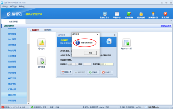 演示視頻觀看鏈接:RMS專業(yè)版存在期初庫存啟用賬套啟用不了如何解決? 信管飛RMS專業(yè)版支持財務處理模塊,存在會計科目。新用戶使用軟件時,在賬套啟用前錄入了期初入庫單,錄入庫存數(shù)量和成本,保存后在賬套啟用界面點擊啟用賬套,會提示如圖以下消息,啟用不了賬套。