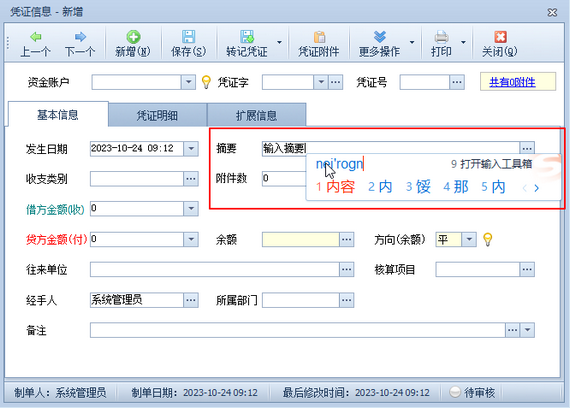 登記出納憑證時(shí)默認(rèn)可以直接輸入摘要內(nèi)容,有用戶在登記出納憑證時(shí),可以選擇摘要,但是無法輸入摘要內(nèi)容,如下圖所示,本篇文章介紹一下解決方法。 演示視頻觀看鏈接:出納憑證摘要只能選擇不能隨意輸入,如何解決演示視頻 出現(xiàn)此問題的原因是:?jiǎn)⒂昧恕俺黾{憑證摘要只能選擇不能隨意輸入”參數(shù)導(dǎo)致的。解決方