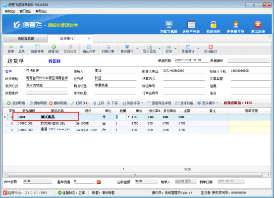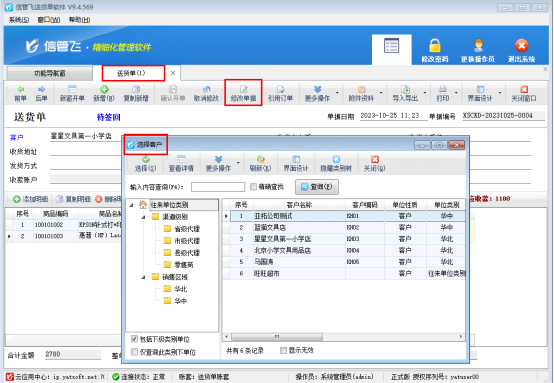 信管飛送貨單軟件、信管飛RMS軟件、信管飛倉庫管理軟件等在開銷售單時(shí)客戶名稱可以直接輸入,也可以通過選擇錄入。開單保存審核后,之前版本不允許修改往來單位名稱,造成客戶名稱輸入錯(cuò)誤后只能重新開單,最新版已更改為審核后允許修改單位名稱,如下圖所示,點(diǎn)擊修改單據(jù),可以重新選擇客戶信息。 演示視頻觀看鏈接:客