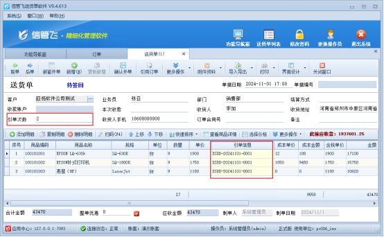 信管飛RMS、信管飛倉(cāng)庫(kù)管理軟件、信管飛送貨單軟件等都支持開(kāi)銷售出庫(kù)單來(lái)管理銷售送貨。部分用戶存在客戶先下訂單然后根據(jù)銷售訂單進(jìn)行發(fā)貨。為了避免重復(fù)發(fā)貨,軟件可設(shè)置銷售出庫(kù)單引單生成,顯示引單次數(shù),造成多次發(fā)貨。 本文以“信管飛送貨單軟件”為例,介紹送貨單引用訂單,如何顯示引單次數(shù)? 在功能導(dǎo)航窗選擇