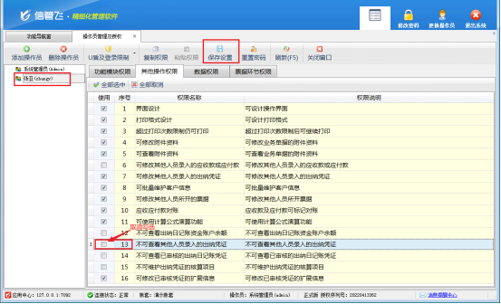 信管飛出納記賬軟件是一款集現(xiàn)金/銀行日記賬、應(yīng)收應(yīng)付款管理、工資管理、發(fā)票管理等為一體的綜合性財(cái)務(wù)出納管理軟件,有用戶在使用軟件時(shí),系統(tǒng)管理員賬號(hào)登錄軟件可以看到日記賬憑證,但是操作員賬號(hào)登錄軟件確無法查看憑證,如下圖所示。 出現(xiàn)以上問題的原因是:操作員賬號(hào)沒有查看其他人員錄入的出納憑證的權(quán)限。&nb