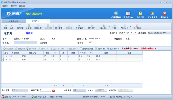信管飛旗下進(jìn)銷存軟件、送貨單軟件等支持設(shè)計打印模板格式,有客戶需要設(shè)置打印多頁單據(jù)時,設(shè)置每頁小計,最后一頁顯示總計,本文示范下如何設(shè)置打印模板。 觀看演示視頻,快速上手自定義打印模板設(shè)置方法。鏈接已備,點擊即學(xué)。 以“信管飛RMS”為例,打開一張送貨單