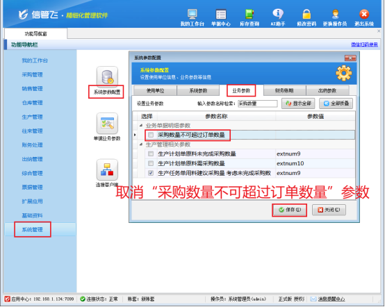 在采購業(yè)務(wù)里,不少客戶會先按需求開采購訂單,采購人員再依單采購入庫。但實際采購時,常出現(xiàn)采購數(shù)量大于訂單數(shù)量的情況,當出現(xiàn)這種情況后,部分客戶在進行開單時,會因系統(tǒng)限制,提示采購數(shù)量超限而無法保存單據(jù)。別擔(dān)心,信管飛RMS軟件能輕松化解這一難題! 簡單設(shè)置,開啟靈活采購 &nbs